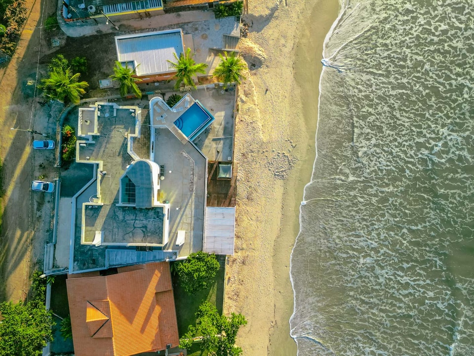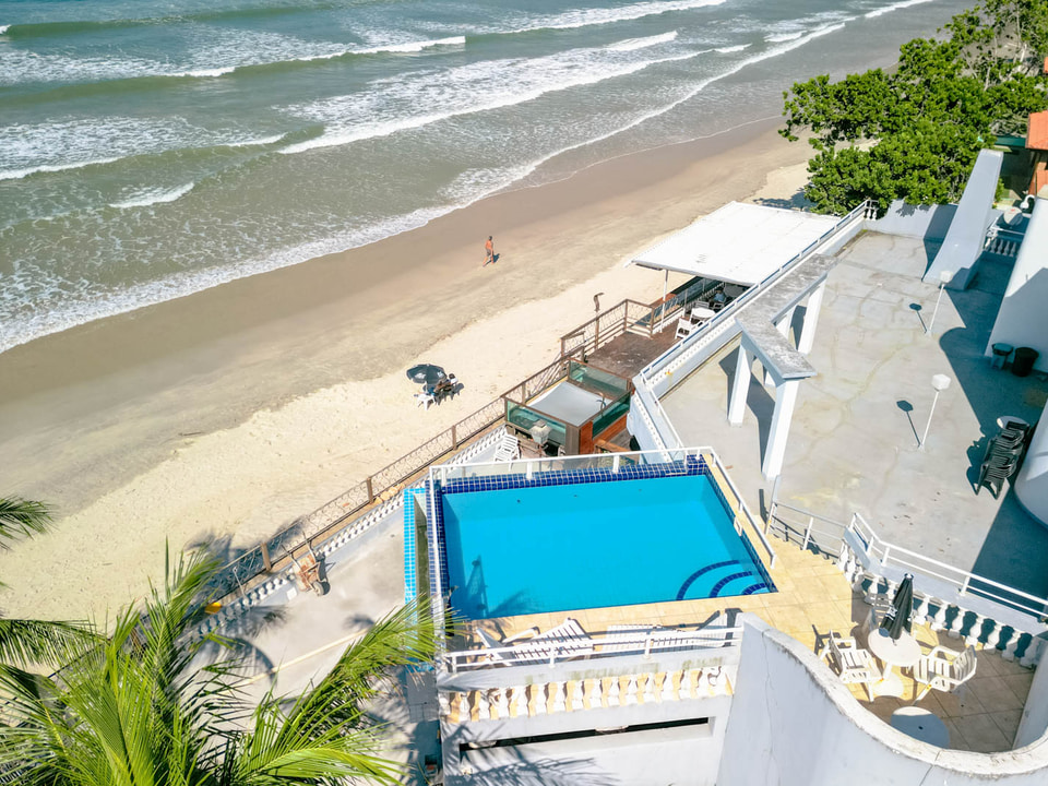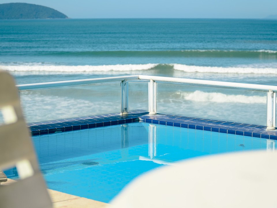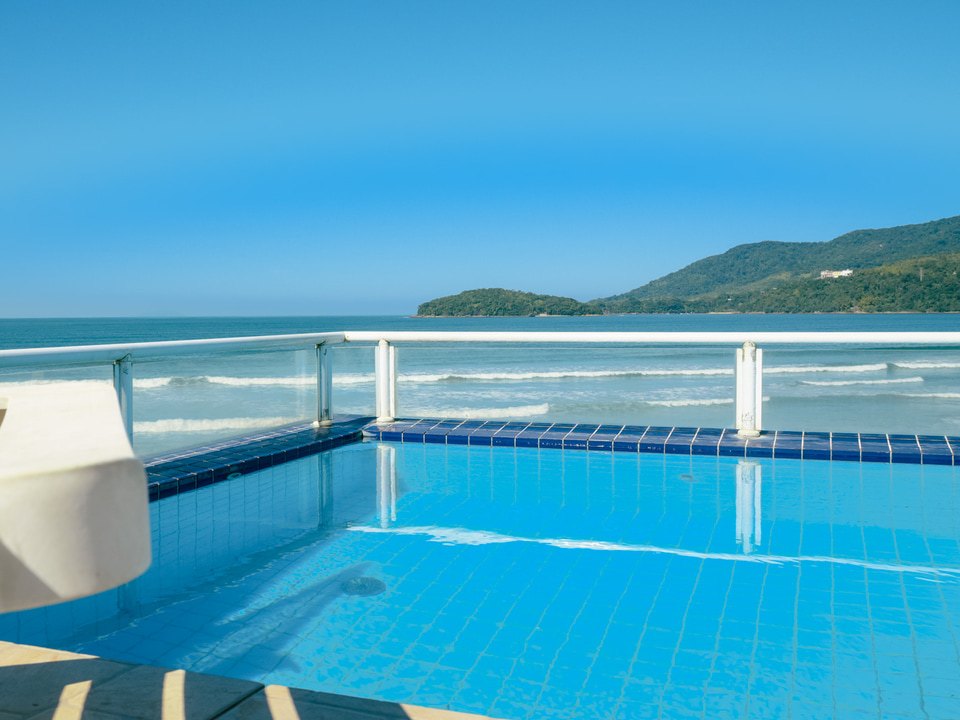 Desfrute do acesso direto à praia e relaxe em nossa piscina ao ar livre com borda infinita, cercada por um lindo jardim e um lounge compartilhado.