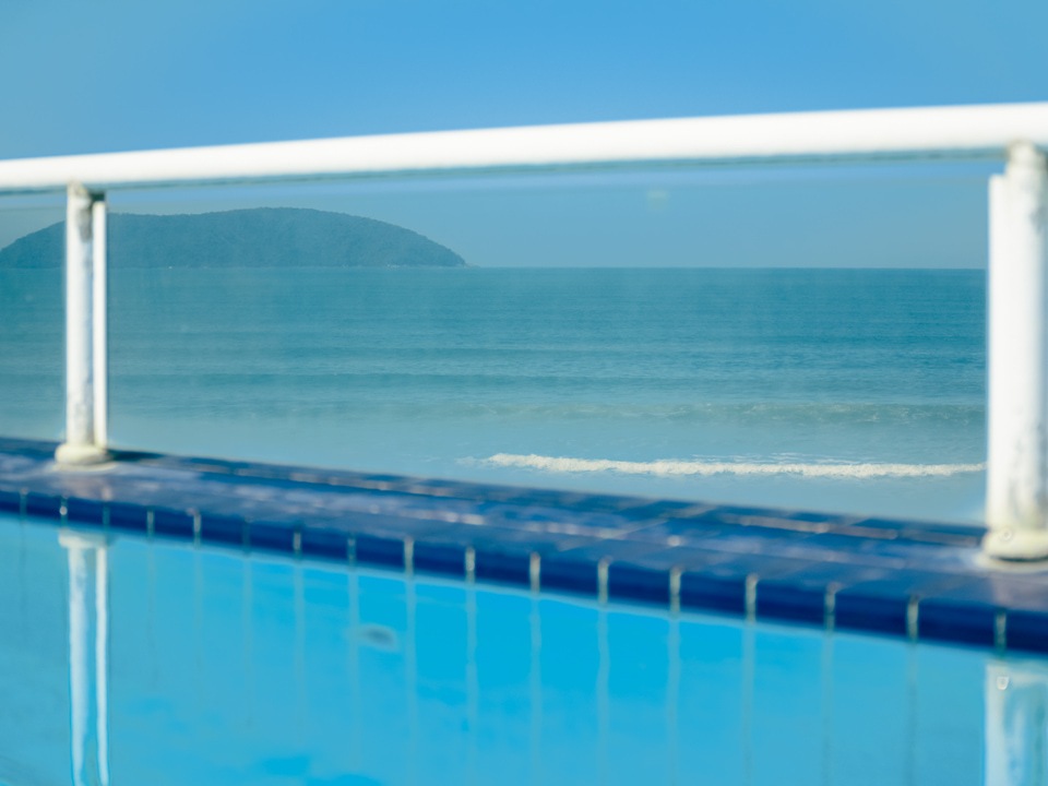 Nossa piscina com borda infinita e vista para o mar promete momentos de deslumbre. Disponibilizamos toalhas para a praia e piscina, cadeiras, guarda-sol e churrasqueira para seu lazer.